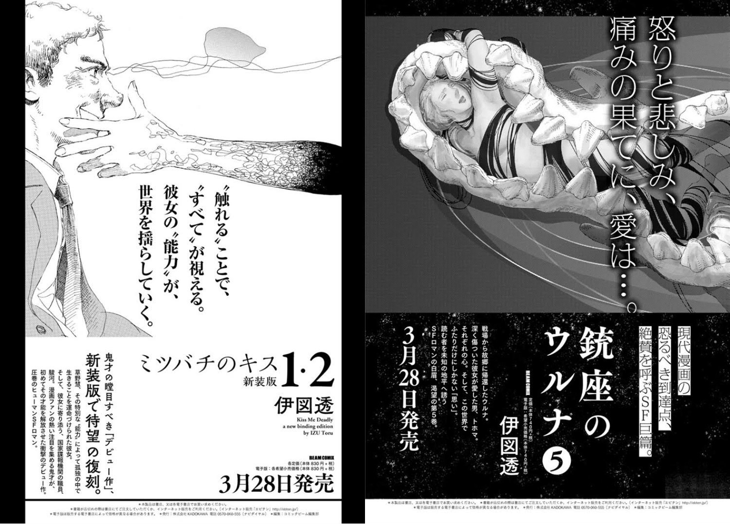 コミックビーム編集部 A Twitteren 3月28日 水 発売のビームコミックス ラインナップはこちら 銃座のウルナ 伊図透 ミツバチ のキス新装版 伊図透