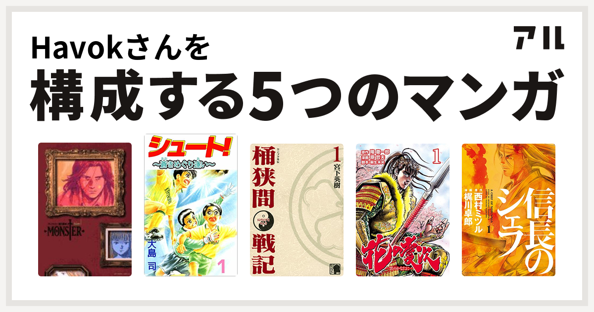 Havokさんを構成するマンガはmonster シュート センゴク外伝 桶狭間戦記 花の慶次 雲のかなたに 信長のシェフ 私を構成する5つのマンガ アル